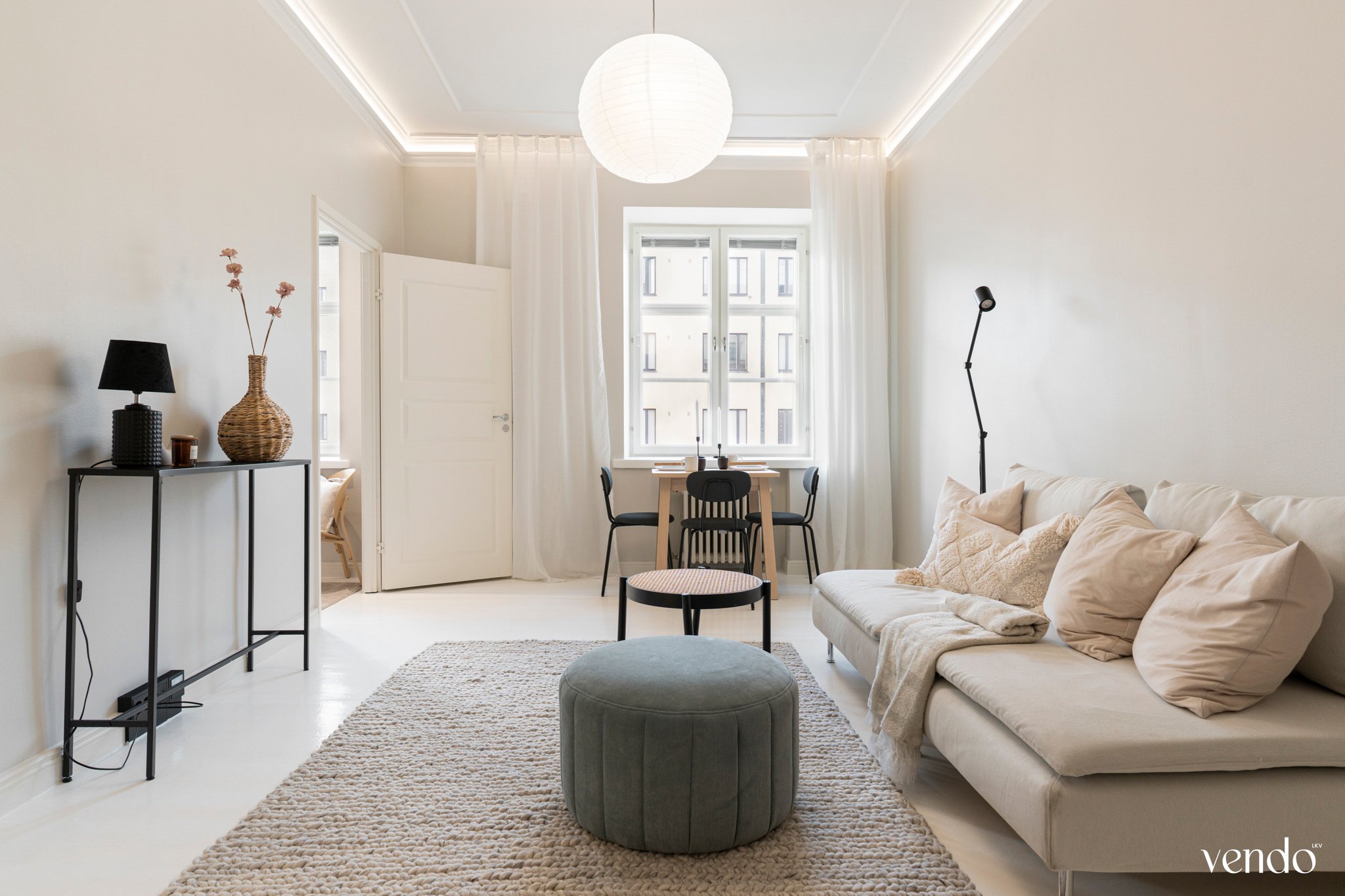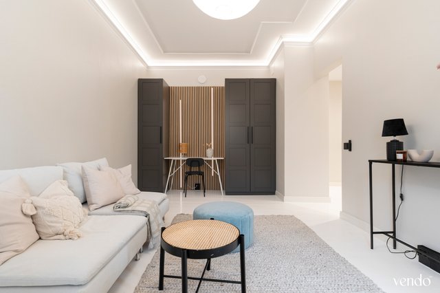 Kodin ilmettä korostavat katon rajaan asennetut kirkkaus säädettävät LED-nauhat ja tyylikkäät koristelistat, jotka tuovat huonekorkeuden ja ajalle sopivan modernin hengen kauniisti esiin.