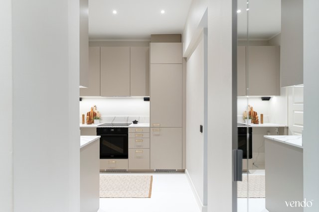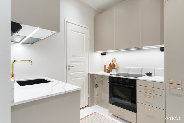 Huoneisto on käynyt läpi laajan remontin vuonna 2025, jossa keittiö kodinkoneineen on uusittu ja pohjaratkaisua muokattu toimivammaksi. Seinä-, lattia- ja kattopinnat on ehostettu laadukkailla materiaaleilla muodonmuutoksen yhteydessä.