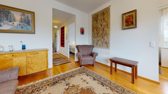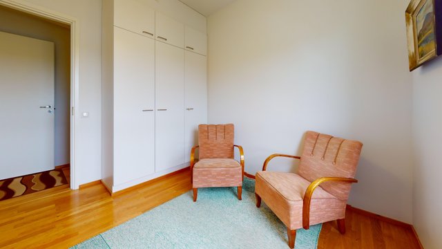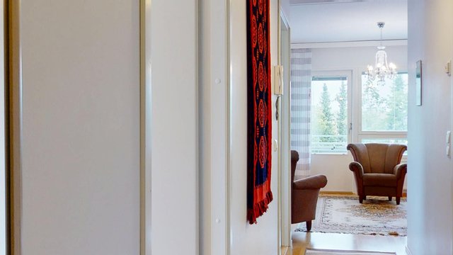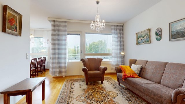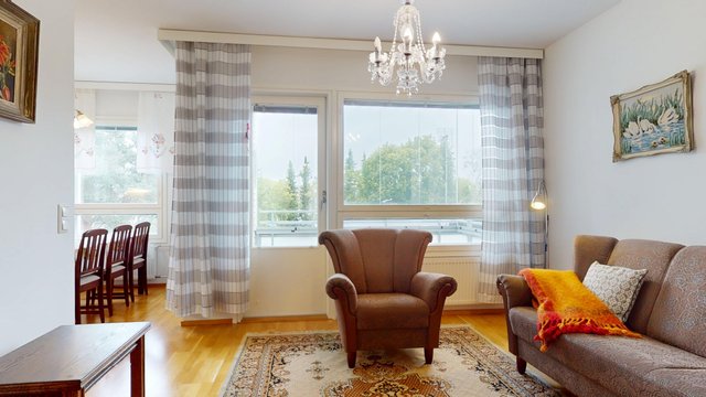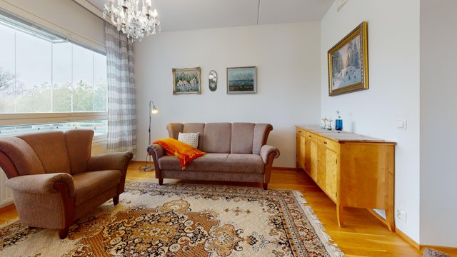 Asunnossa on tilava olohuone ja kaksi makuuhuonetta. Koko huoneistossa on kaunis parkettilattia. Keittiö on moderni ja hyvin varusteltu, ja kylpyhuoneessa on oma sauna.