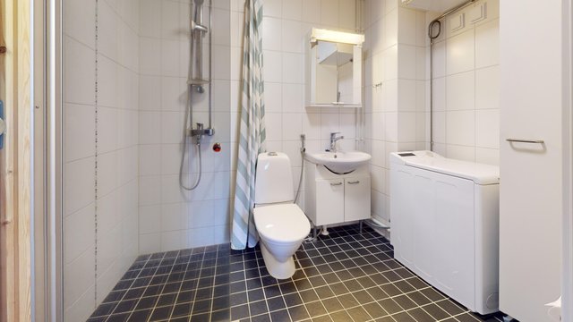 - Suihku, suihkuseinä, lattialämmitys, ja wc-istuin