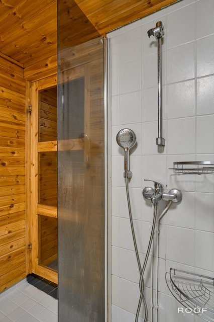 - Lattialämmitys, pesukoneliitäntä, ja suihku