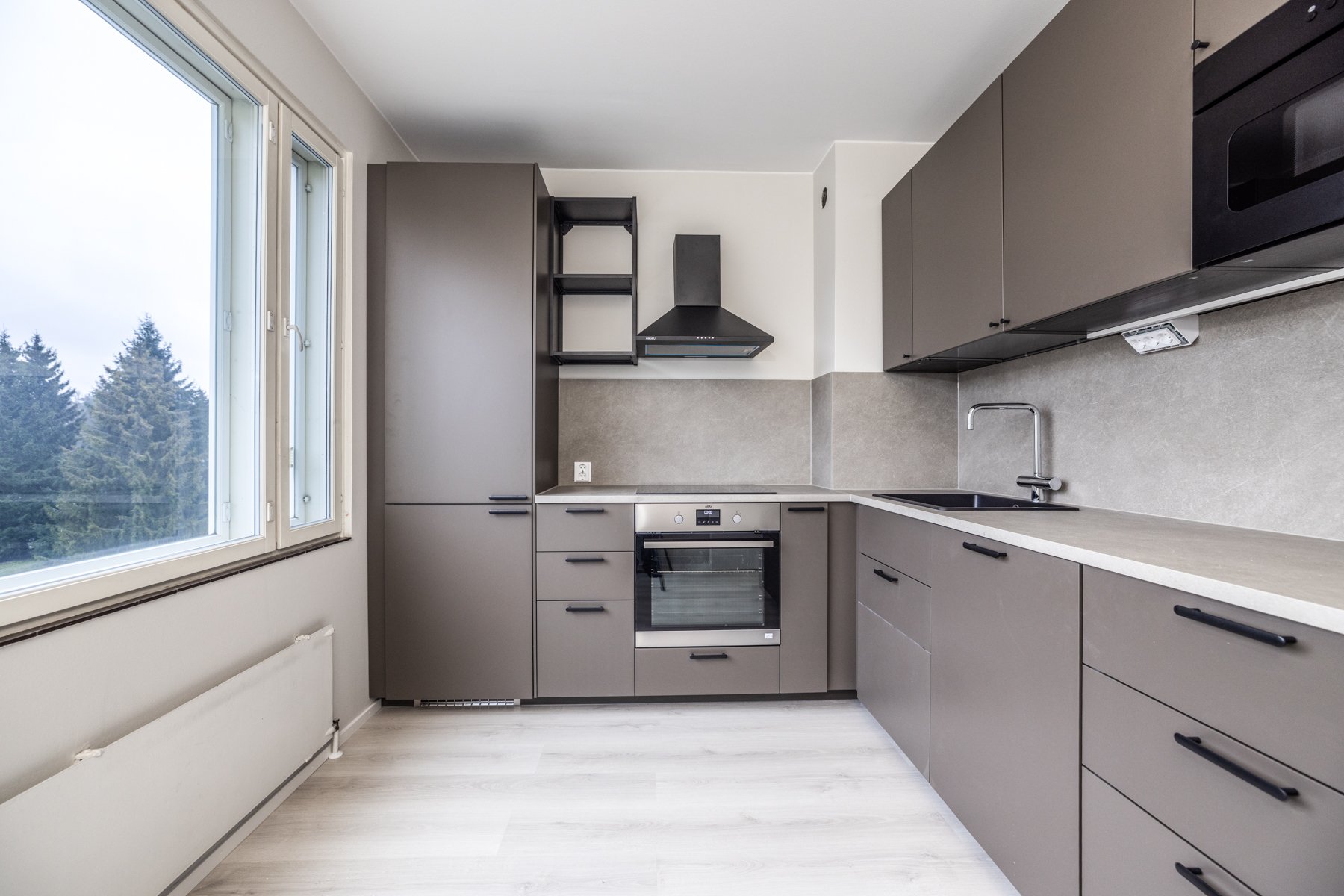 - Remontoitu 11/ 2025. Uusittu kaapistot, kodinkoneet, lattia, maalaukset. Aktiivihiili- liesituuletin, jääkaappi-pakastin, iduktioliesi, uuni, astianperukone, integroitu mikroaaltouuni. Lattia laminaatti.