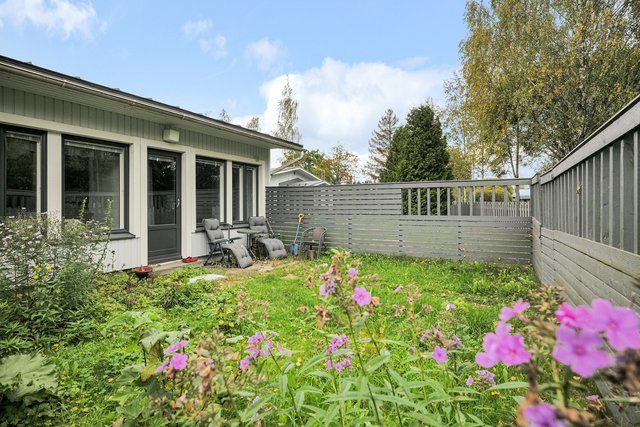 Iso ja aidattu takapiha tarjoaa runsaasti tilaa niin lasten leikeille, puutarhanhoidolle kuin kesäpäivien oleskelulle. Huoneiston yhteydessä, suoraan etuoven vieressä sijaitsee iso ulkovarasto mikä tuo säilytystilan tuntua. Lisäksi jokaiselle huoneistolle kuuluu oma tolpallinen autopaikka.