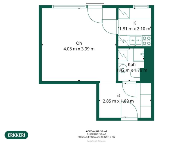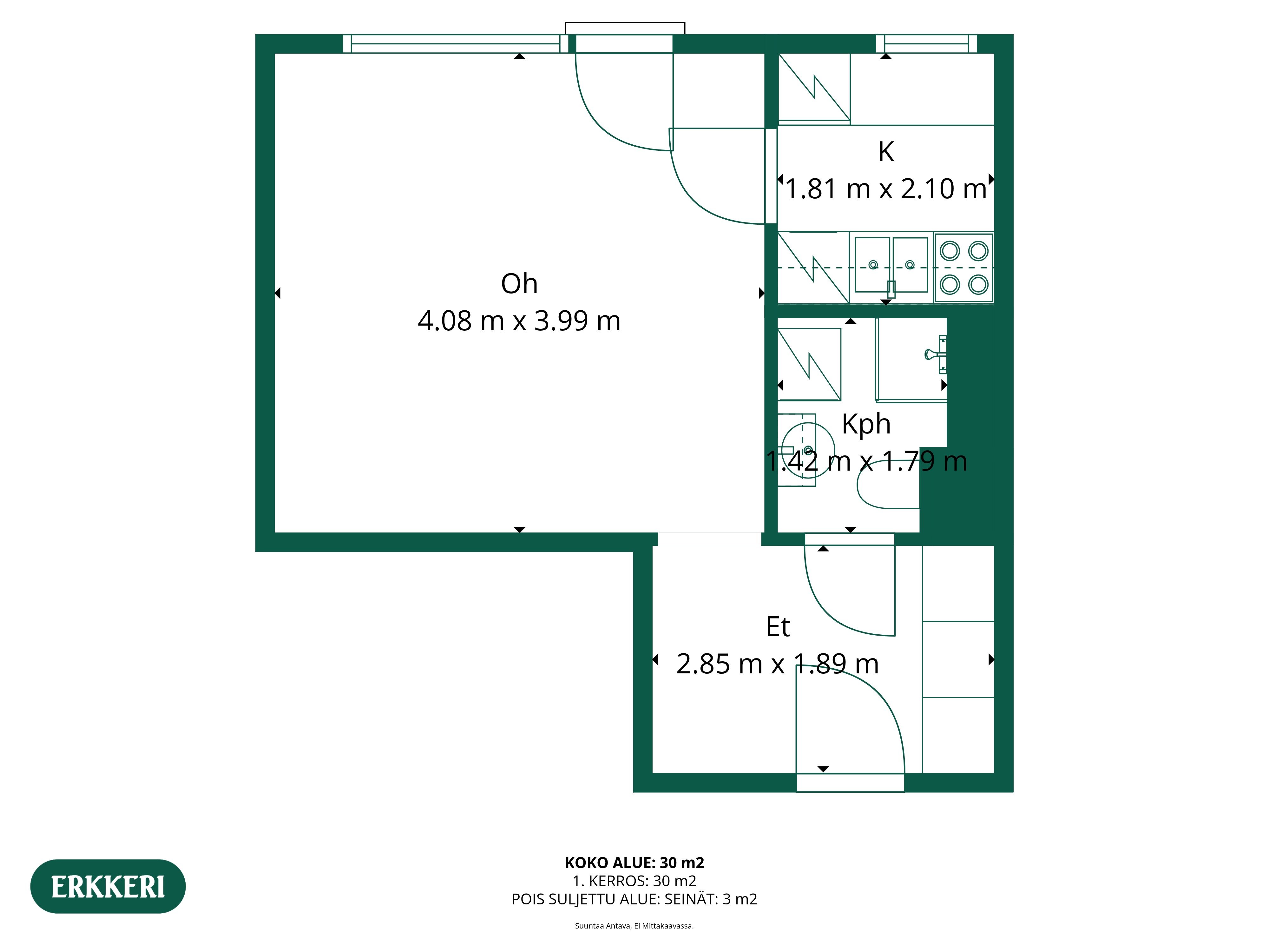 - Isännöitsijäntodistuksen mukainen, Yhtiöjärjestyksen mukainen, (Pinta-ala ei ole tarkistusmitattu ja todellinen pinta-ala voi olla suurempi tai pienempi, kuin ilmoitettu)