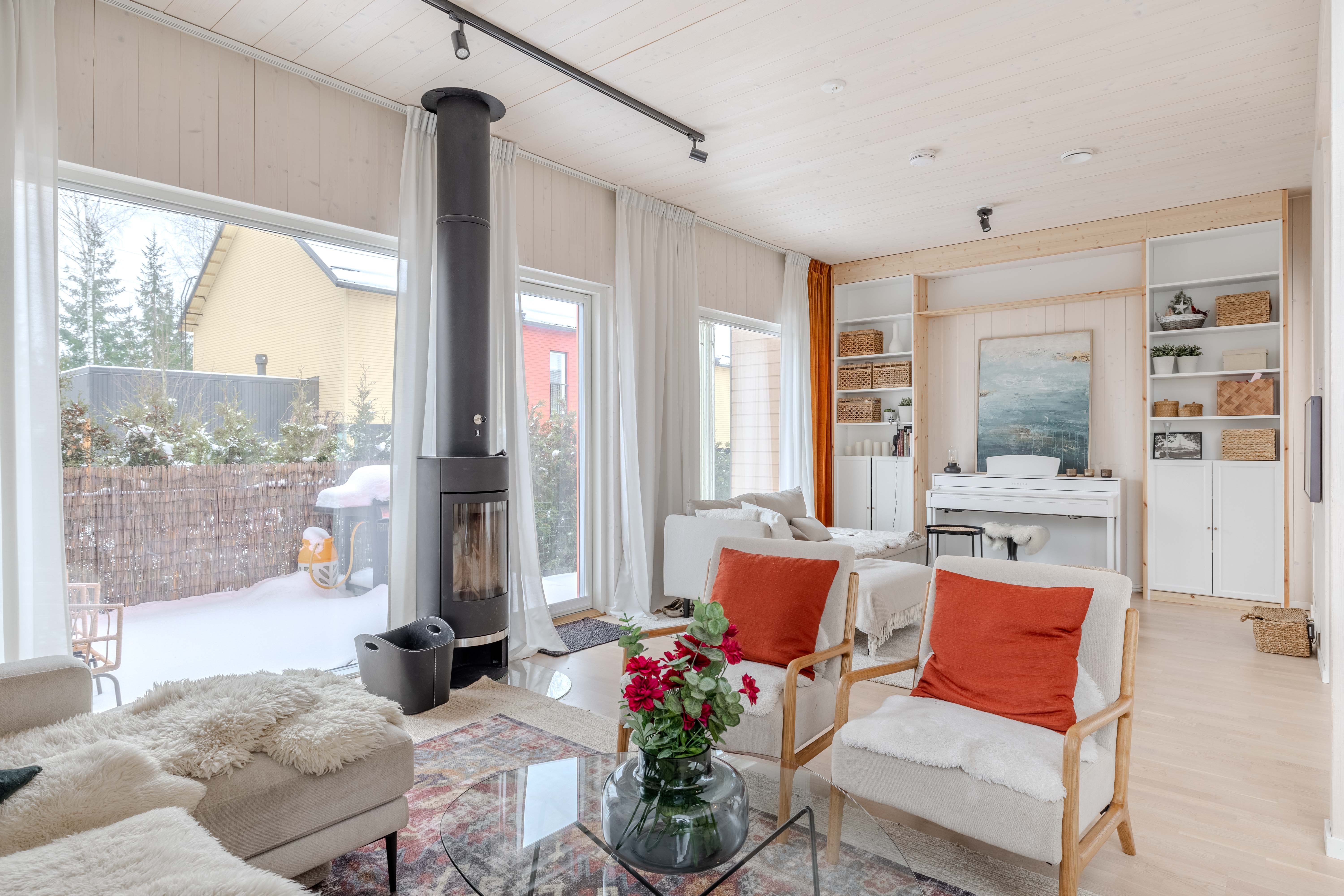 Tämä energiatehokas ja laadukkaasti rakennettu, Jylkäs Arkkitehdit Oy:n suunnittelema CLT-talo, sijaitsee rauhallisella Honkasuon alueella Helsingissä. Lämmintunnelmaisessa kodissa säväyttää luonnonmateriaalit, harkitut tilaratkaisut ja hulppea huonekorkeus avarassa olohuone-saarekekeittiössä. Vuonna 2022 valmistunut talo on erinomaisessa kunnossa, sen suurista ikkunoista tulvii valoa ja rakennusmateriaalit takaavat ekologisuuden ja miellyttävän sisäilman.