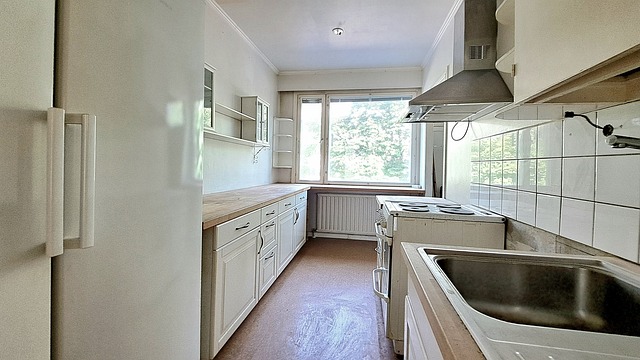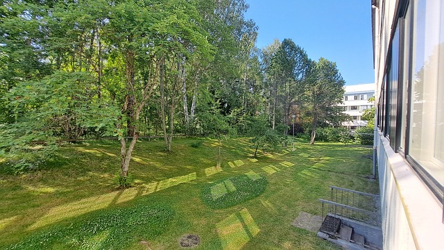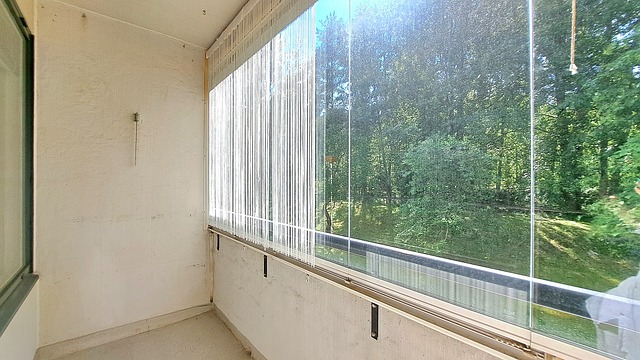 - Puistomainen näkymä parvekkeelta ja kahdesta makuuhuoneesta. Keittiöstä ja 3. makuuhuoneesta taloyhtiön vehreälle sisäpihalle ja naapuritaloa.