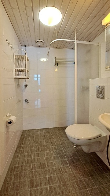 - WC-istuin, peilikaappi, suihkuseinä, pesukoneliitäntä, suihku, ja kiinteät valaisimet