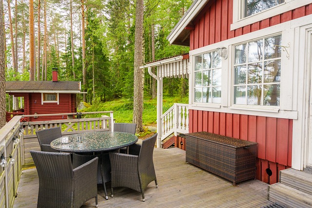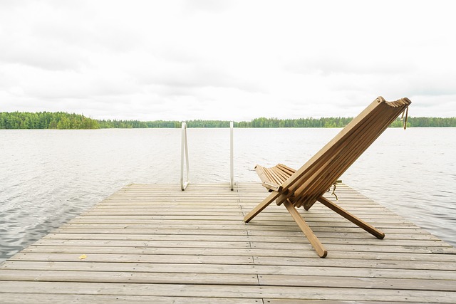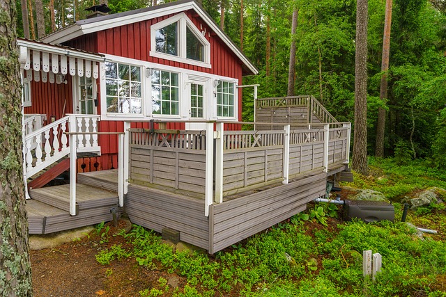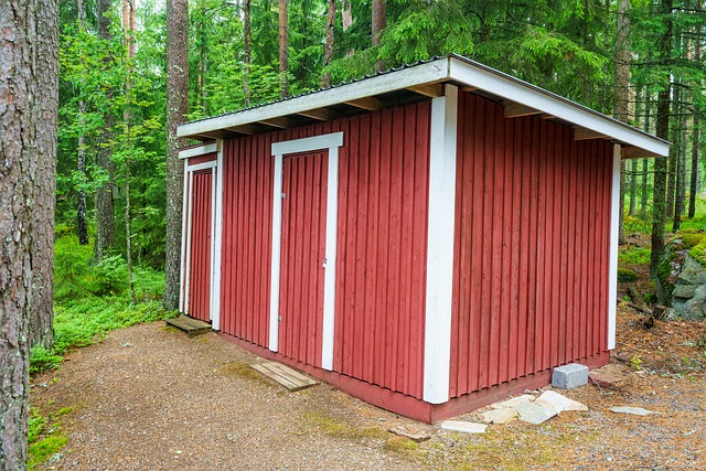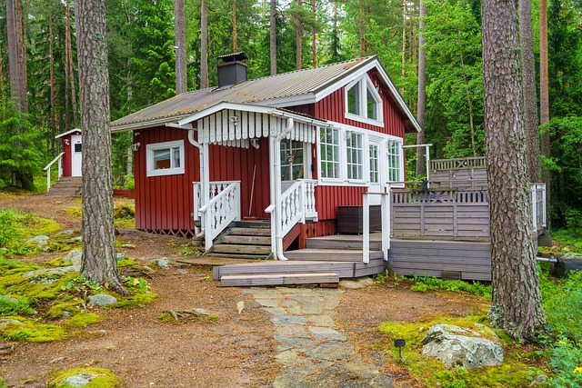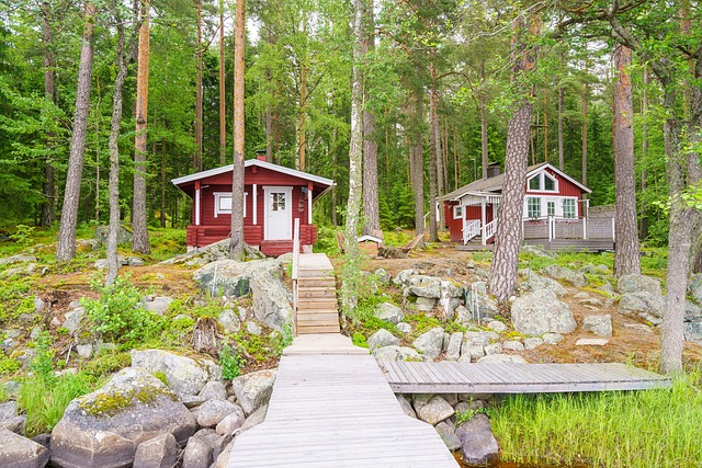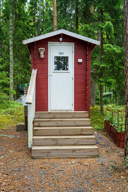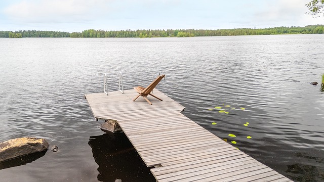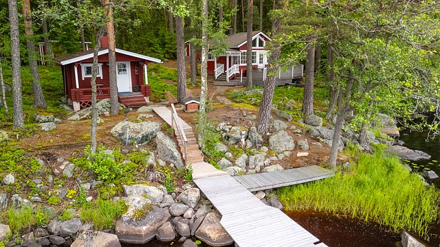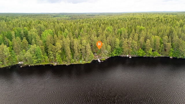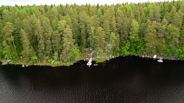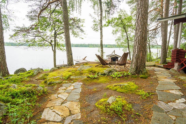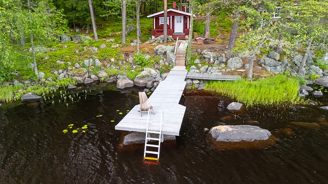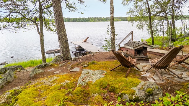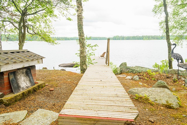 Reilun kokoisessa pihassa mm. kompostoiva puucee, varasto, puuliiteri ja laituri.
