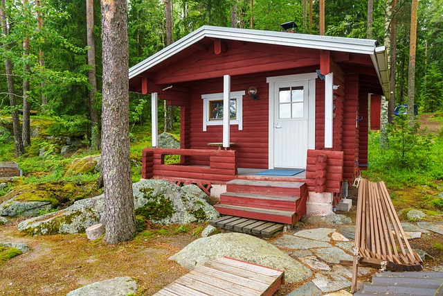 Rannan tuntumassa erillinen saunarakennus, jossa sauna ja pukuhuone.