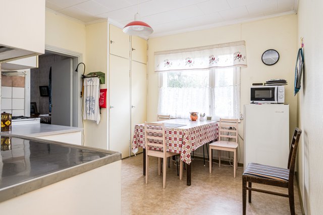Tämä on loistava kohde remonttitaitoiselle, joka haluaa tehdä kodista juuri oman näköisensä. Tässä kodissa tilavat makuuhuoneet, sekä tilava olohuone ja keittiö jonne mahtuu myös isompikin ruokaryhmä.