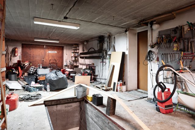 Kellaritilassa olevasta autotallista löytyy rasvamonttu.