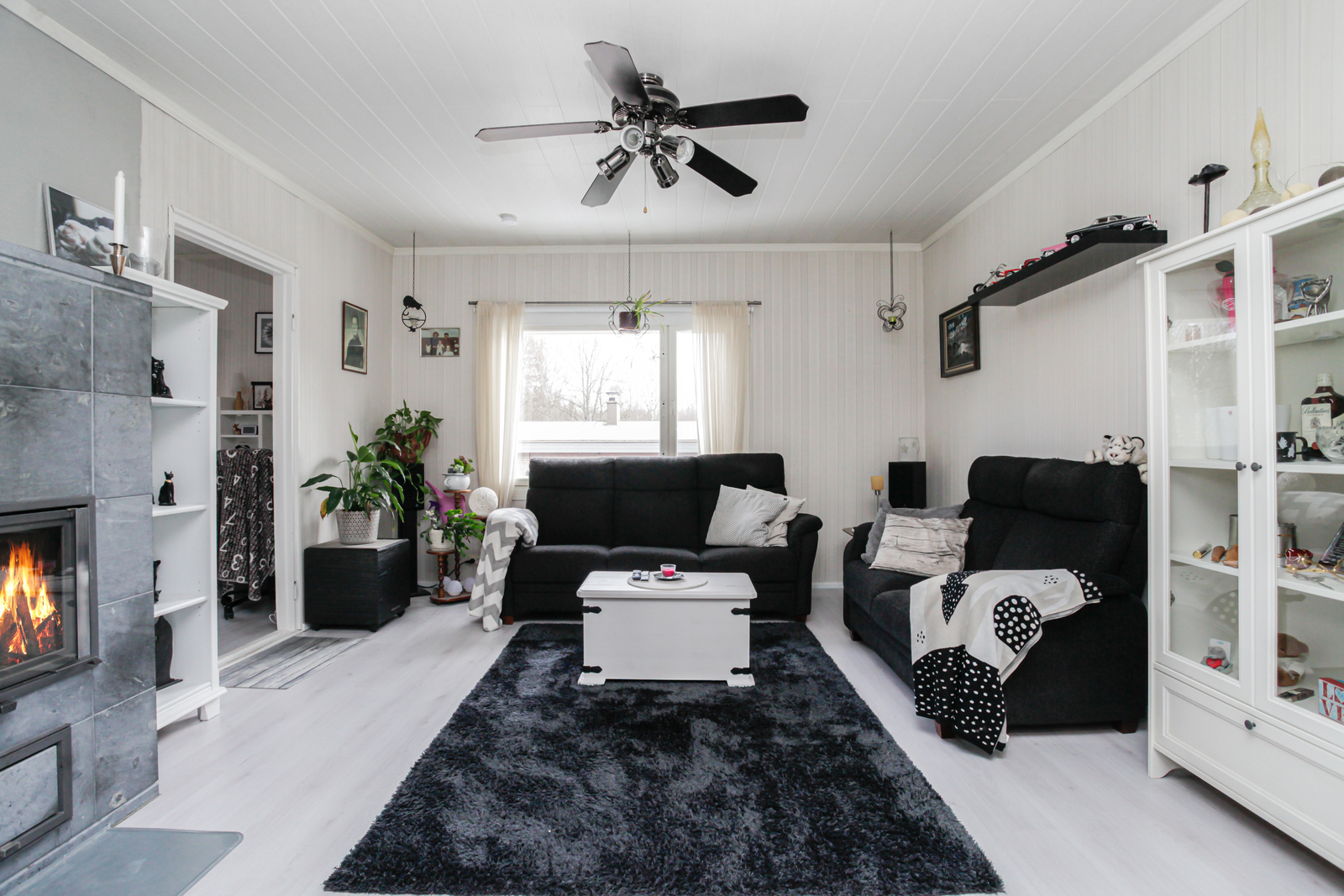 Yläkerrassa sijaitsevat kaksi tilavaa huonetta, jotka tarjoavat runsaasti tilaa perheelle tai vieraille. Yläkerrassa on myös vaatehuone, joka auttaa pitämään kodin järjestyksessä. Alakerrassa voit nauttia avarasta keittiöstä, joka sijaitsee omassa rauhassaan. Yläkerrassa oleva pönttöuuni tuo lämpöä ja tunnelmaa talveen, ja alakerran olohuoneessa on varaava takka, joka on myös uusittu.