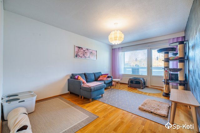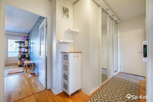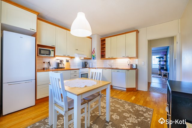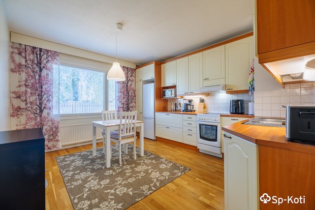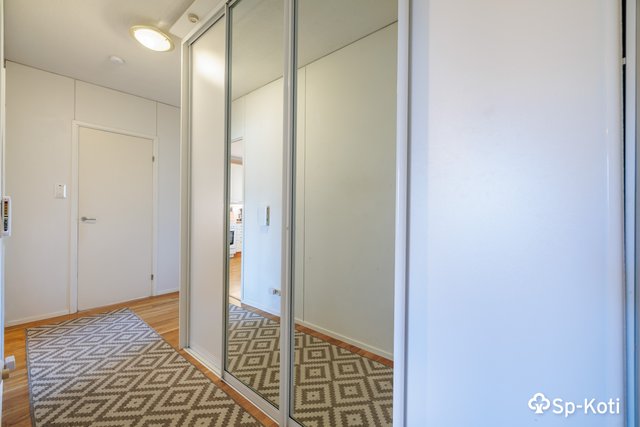 Huoneet ovat tilavia ja säilytystilaa löytyy hyvin. Sijainti rauhallisen taloyhtiön maantasolla tuo asumiseen lisää käytännöllisyyttä.