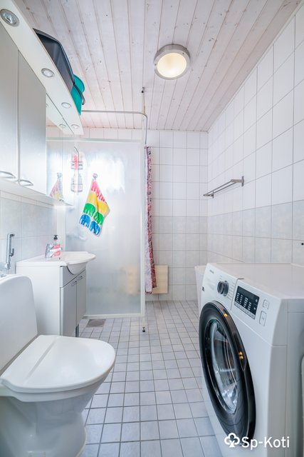 - WC-istuin, suihku, suihkuseinä, pesukoneliitäntä, peili, ja bidee-suihku