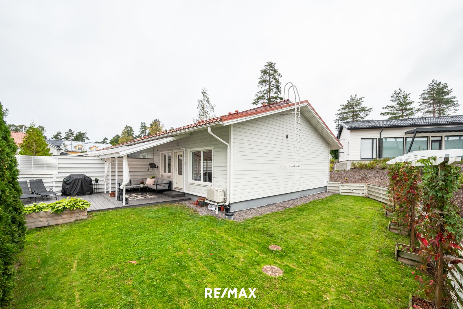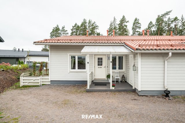 Tervetuloa tutustumaan tähän vuonna 2014 valmistuneeseen, kiinteistömuotoiseen rivitalon päätyhuoneistoon Järvenpään Nummenkylässä! Neljän asunnon rivitalo on jaettu hallinnanjakosopimuksella, joten vastaat siis vain omista kuluistasi ja päätät oman kotisi asioista itsenäisesti - ja mikä parasta, tässä kodissa ei makseta kuukausittaista hoitovastiketta.