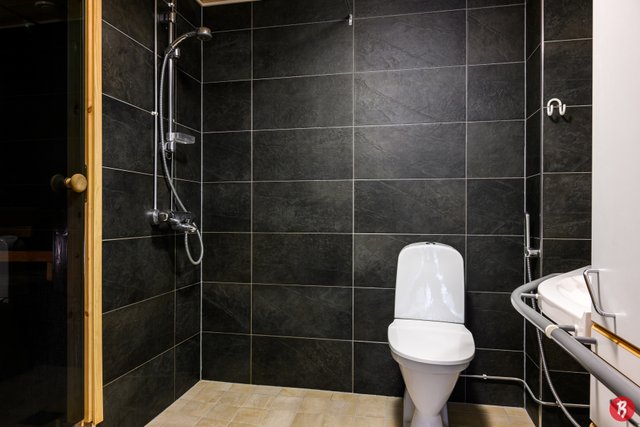 - WC-istuin, suihku, pesuallas, allaskaappi, bidee-suihku, ja lattialämmitys