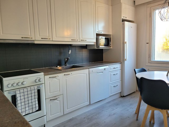 - sähköliesi, astianpesukone, liesituuletin, ja jääkaappi