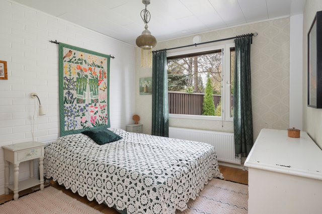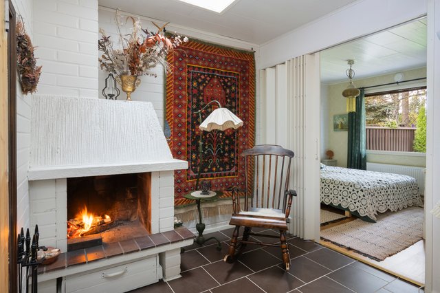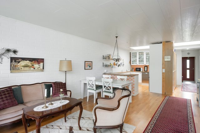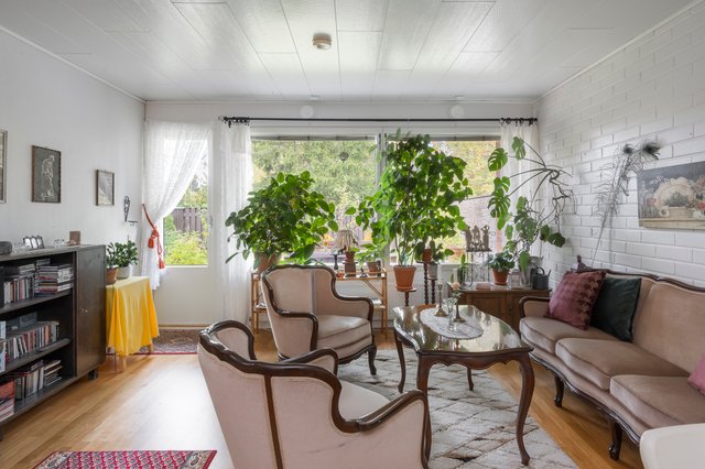 Tämä vuonna 1972 rakennettu 94m2:n koti yhdessä tasossa tarjoaa kolme tilavaa makuuhuonetta, avokeittiön ja olohuoneen, jotka yhdessä muodostavat toimivan ja avaran kokonaisuuden. Lisäksi tunnelman tuojana on takkanurkkaus. Asunnossa on neljä kattoikkunaa.