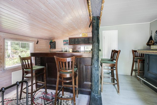 uusittu ja baarikalusteet asennettu, ilmalämpöpumppu asennettu