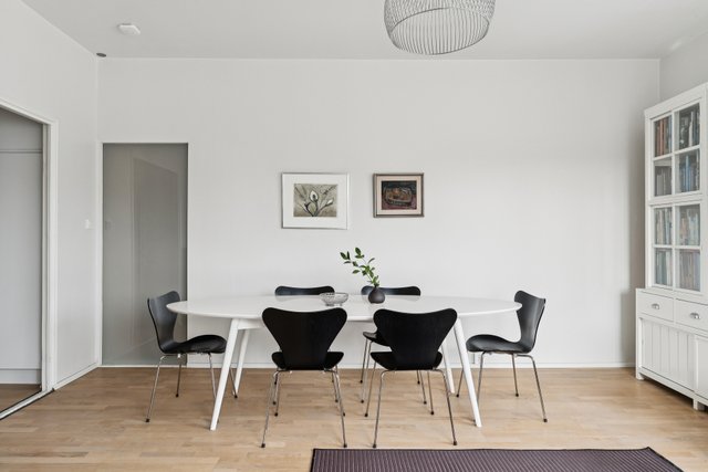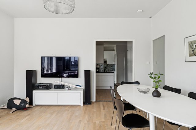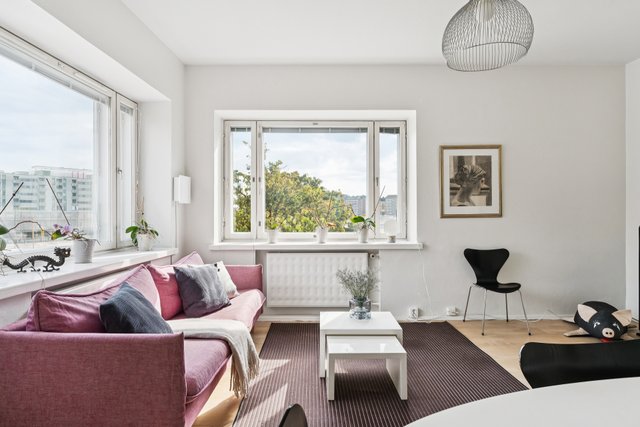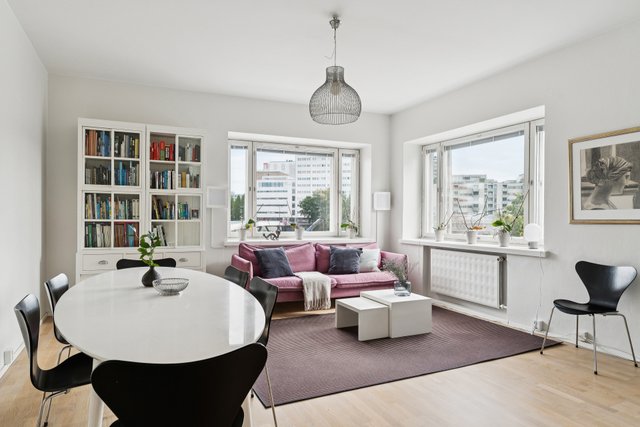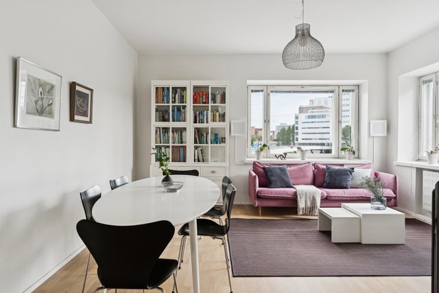 Valoisa kulmahuoneisto isommallekin perheelle.