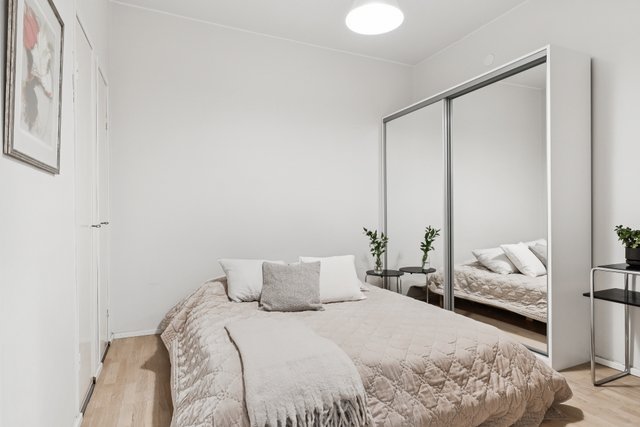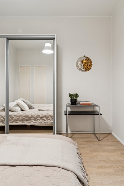 - Kolme makuuhuonetta, joista kahdesta pienemmästä näkymät Hakaniemenkadulle päin. Isoin makuuhuone on ns. alkovi, tilasta tehty maitolasi-ikkuna olohuoneeseen päin, josta saadaan luonnonvaloa tilaan (tällä hetkellä ikkunan edessä vaatekaappi).