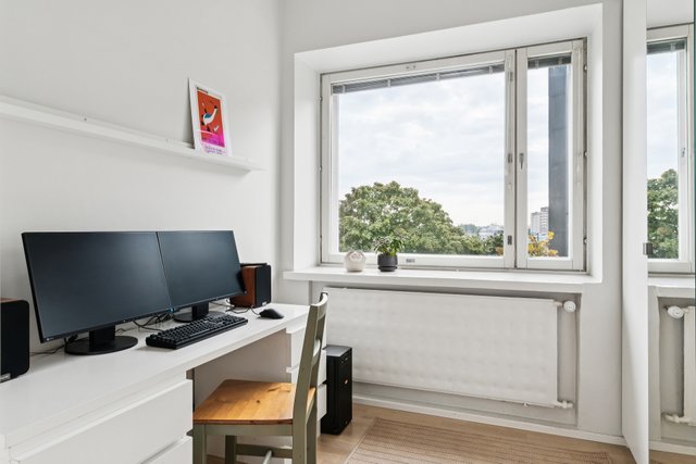Tässä viime vuosien aikana täysin remontoidussa asunnossa on todelliset tehoneliöt. Vuonna 2017 valmistuneen remontin yhteydessä huoneiston pohja on järjestelty uudelleen niin, että huoneistoon on saatu kaksi pienempää makuuhuonetta sekä yksi isompi makuuhuone, tilava valoisa olohuone, josta näkymät Kruununhakaan päin, tehokkaasti suunniteltu keittiötila käytävän yhteydessä, tilava eteinen, erillinen wc sekä vuonna 2021 tyylikkäästi remontoitu kylpyhuone.