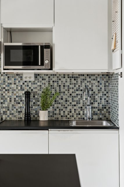 - Jääkaappipakastin, liesituuletin, mikroaaltouuni, astianpesukone, erillisuuni, ja induktioliesi