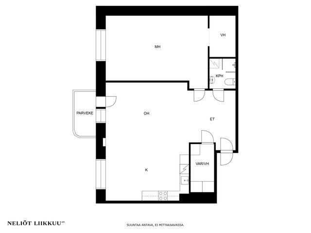 AVARALLA POHJARATKAISULLA VARUSTETTU PARVEKKEELLINEN KOTI HYVIN HOIDETUSTA TALOYHTIÖSTÄ!