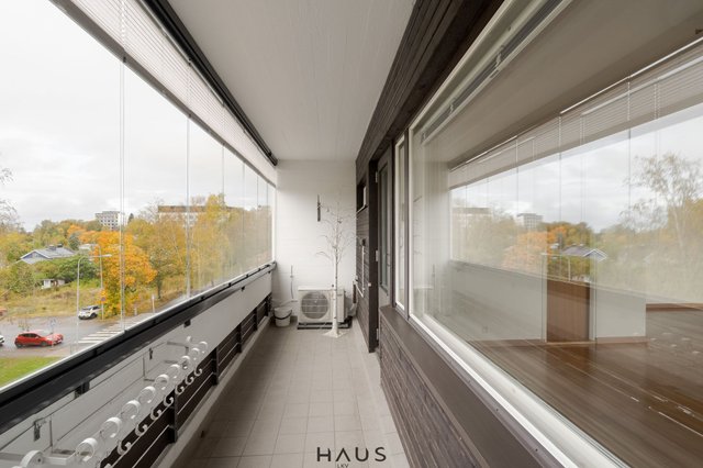 Asunto on läpitalon ja siinä on kaksi lasitettua parveketta – yksi kumpaankin suuntaan, joten voit nauttia auringosta aamusta iltaan. Pintaremontteja on tehty vuosien varrella, ja kokonaisuus on siistissä ja hyvässä kunnossa. Viilentävä ilmplämpöpumppu lisää myös viihtyisyyttä kesän kuumimpina päivinä.