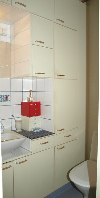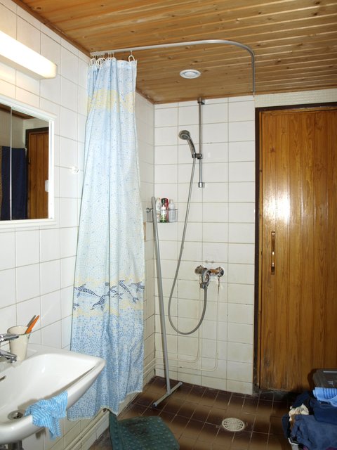 - Suihku, pesukoneliitäntä, peili, ja pesuallas