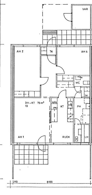 Hyvän, rauhallisen taloyhtiön päädyssä sijaitseva melko alkuperäsikuntoinen saunallinen 3 h asunto.
