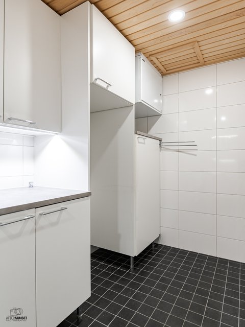 - Tilava kylpyhuone jonka yhteydessä kodinhoitotilat.
