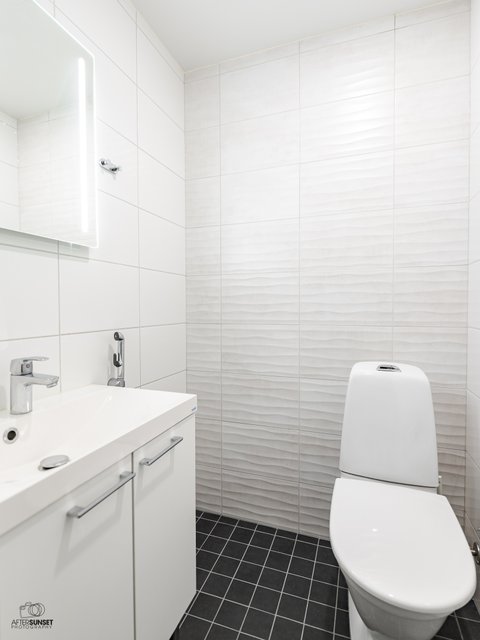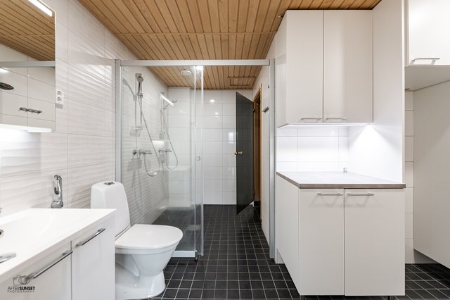 - WC-istuin, lattialämmitys, ja pesukoneliitäntä