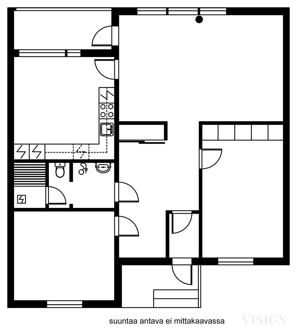 - Yhtiöjärjestyksen ja isännöitsijäntodistuksen mukainen pinta-ala on 76m2. Pinta-alaa ei ole tarkistusmitattu. Mainittu pinta-ala saattaa tämän ikäisessä kohteessa poiketa olennaisesti nykyisten standardien mukaan laskettavasta asuinpinta-alasta. Todellinen asuinpinta-ala voi olla yhtiöjärjestyksessä, isännöitsijäntodistuksessa ja esitteessä mainittua pienempi tai suurempi.