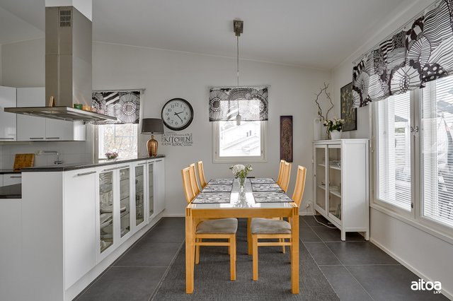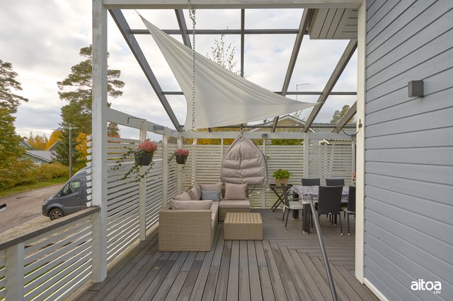 Astu sisään tähän tilavaan ja valoisaan kotiin, joka sijaitsee merellisellä Hirssaaren alueella Kotkassa. Tämä vuonna 2012 valmistunut kaksikerroksinen asunto tarjoaa erinomaiset puitteet aktiiviselle perheelle. Talosta löytyy neljä makuuhuonetta, tilava olohuone ja alakerran monipuoliseen käyttöön soveltuva iso aulahuone/takkahuone, joka tarjoaa tilan harrastuksille kotona.