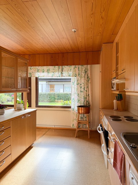 Siistikuntoinen omakotitalo Uotilassa. Vuonna 1974 rakennettu omakotitalo on yksitasoinen kiva perhekoti lähellä kouluja, päiväkoteja sekä kauppaa. Nurmikkoisella kulmatontilla sijaitsevassa kodissa on kolme makuuhuonetta, keittiö, joka on osittain auki olohuoneeseen. Olohuoneen ja keittiön väliin jää hyvä tila esimerkiksi ruokapöydälle. Olohuoneessa on varaava takka, sekä kulku yhteen talon makuuhuoneista. Kotiin on kaksi sisäänkäyntiä. Toinen sisäänkäynneistä tulee pukuhuoneeseen, jonka kautta on kulku pesutiloihin sekä saunaan. Säilytystilaa on mukavasti; ulkovarasto sekä lämmin autotalli. Talon pinnat ovat siistissä kunnossa, ja päivittämällä niitä loihdit perheellesi juuri teidän näköisenne kodin. Tule tutustumaan tähän taloon paikan päälle varaamalla oma näyttöaikasi.