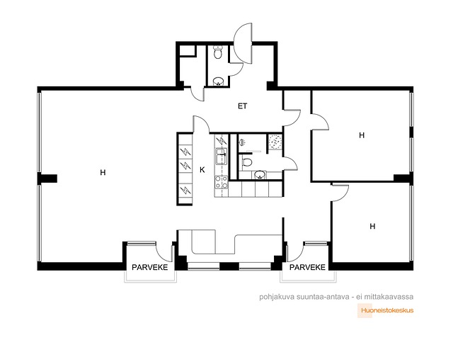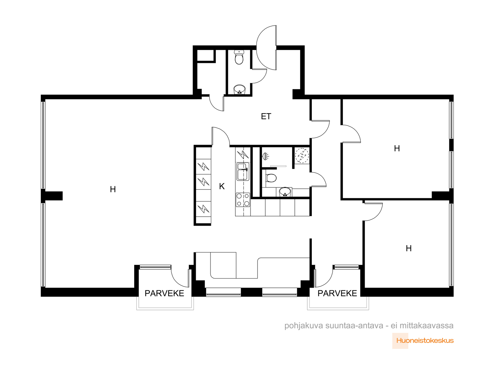 - 2 kpl parvekkeita etelän suuntaan. Vekkikaihtimet toisella parvekkeella.