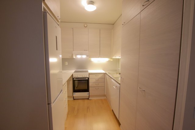 Olohuone ja keittiö ovat avarat ja valoisat, ja niissä on kauniit parkettilattiat. Keittiö on varusteltu nykyaikaisilla kodinkoneilla. Kylpyhuoneessa on laatoitetut pinnat ja kaikki tarvittavat mukavuudet. Asunnossa on myös oma sauna. Huoneistossa on juuri tehty kattava pintaremontti, joten pääset asumaan huoneistoon heti.