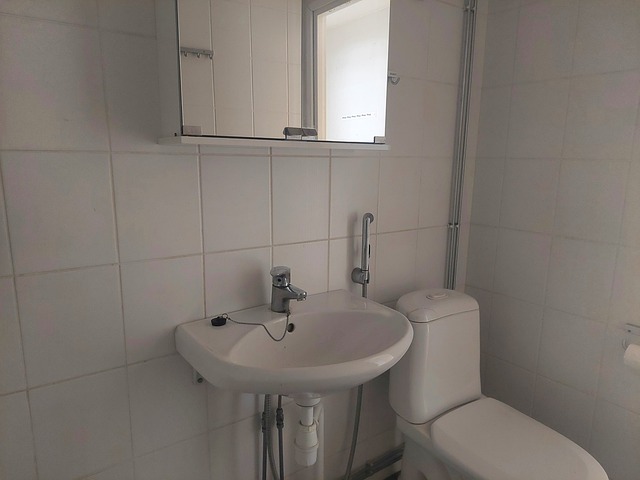 - WC-istuin, pesukoneliitäntä, peilikaappi, ja suihku