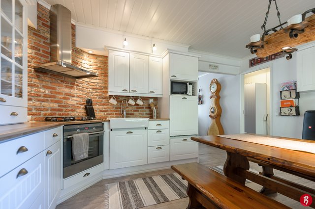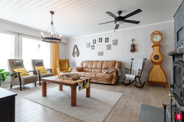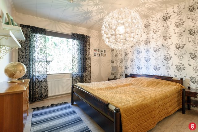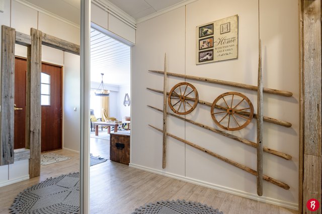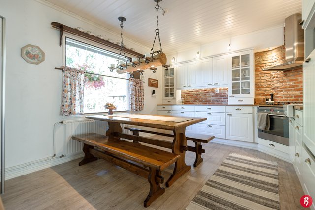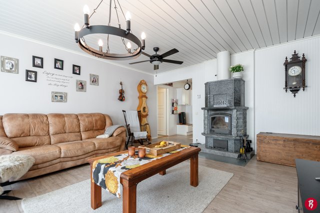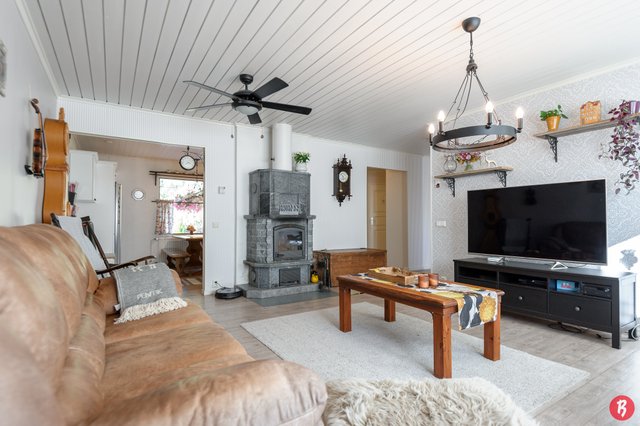 Kodissa on tilavat huoneet ja käytännöllinen pohjaratkaisu, joka sopii erinomaisesti perheille. Neljä makuuhuonetta tarjoavat runsaasti tilaa, ja olohuoneessa oleva varaava takka luo kodikasta tunnelmaa. Keittiö on hyvin varusteltu, ja sieltä löytyy muun muassa kaasuliesi, mikä ilahduttaa ruoanlaitosta innostuneita. Talon yhteydessä lisäksi autotalli.