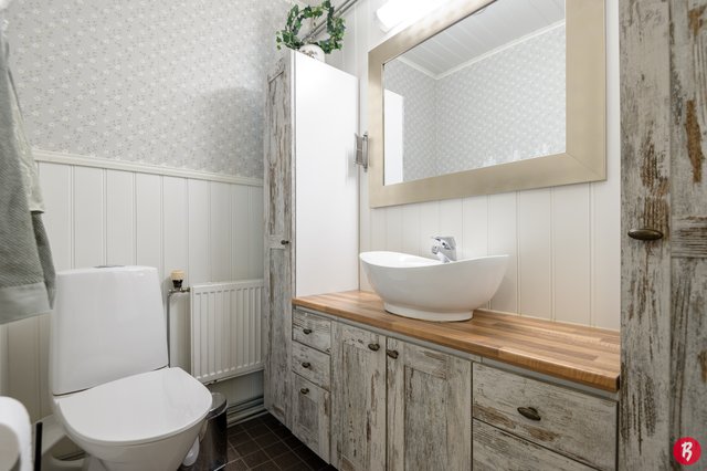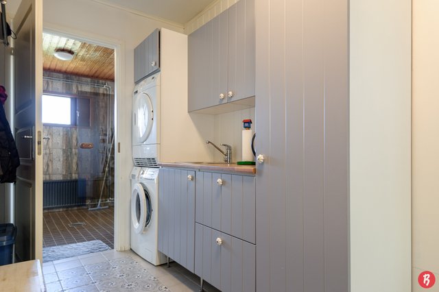 - Lattialämmitys, pesukoneliitäntä, tila pesutornille, ja pesuallas