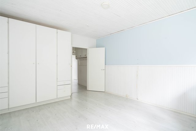 - Tilava Master makuuhuone. Katossa puupaneelia.