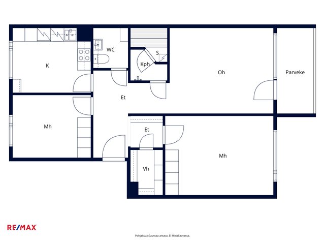 3h, k, wc, lasitettu parveke, vh, sauna