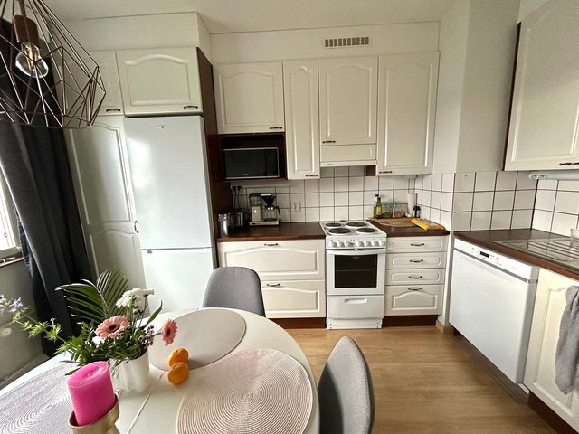 Keittiössä on modernit kaapistot ja tarvittavat kodinkoneet, kuten astianpesukone ja uudehkot kylmälaitteet. Taloyhtiössä on myös oma sauna, joka tuo arkeen halutessasi kivan rentoutumishetken. Taloyhtiössä on lisäksi kellarikomero, joka tarjoaa lisäsäilytystilaa.