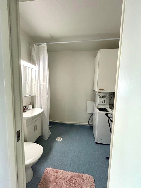 - WC-istuin, suihku, peilikaappi, allaskaappi, pesukoneliitäntä, ja bidee-suihku