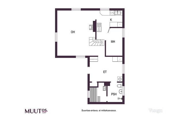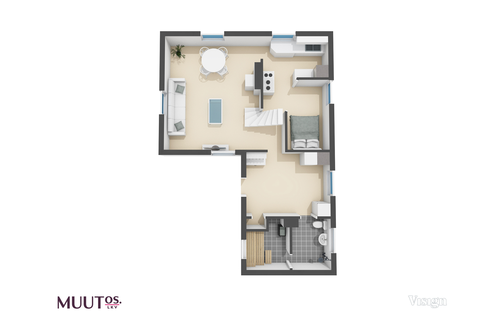 - Pinta-alat perustuvat myyjältä saatuihin tietoihin ja rakennuspiirustuksista laskettuihin arvioihin. Pinta-aloja ei ole tarkistusmitattu, mitattaessa pinta-alat saattavat olla ilmoitettua suurempia tai pienempiä. Hinta ei ole pinta-alaperusteinen. Asuintilojen pinta-ala on laskettu rakennuspiirustuksista ja siihen on huomioitu kaikki asuinkäytössä olevat asuinkäytössä olevat tilat keskikerroksessa sekä parvi, muihin tiloihin on laskettu alakerta. Rakennus- ja huoneistorekisteriotteen mukaan huoneistoala 36 m², kerrosala 60 m². Rakennusluvan mukaan laajennuksen kerrosala 22 m².