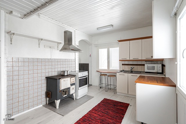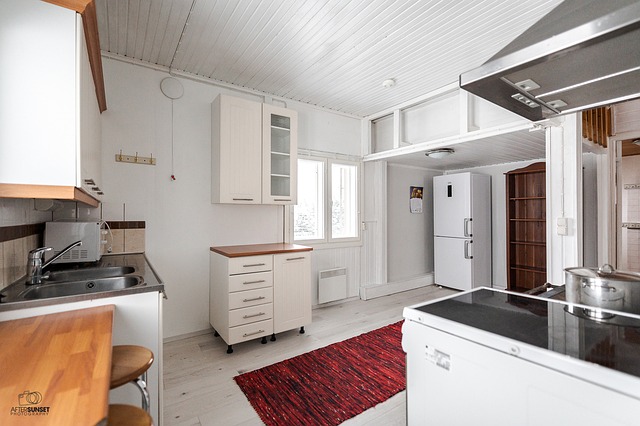 - Mikroaaltouuni, liesituuletin, jääkaappipakastin, liesi, ja varattu paikka astianpesukoneelle