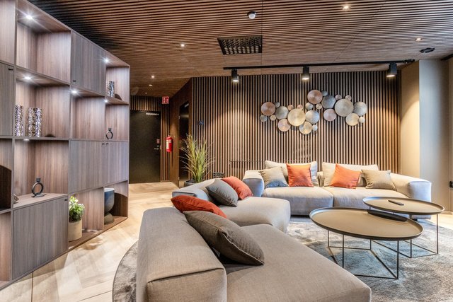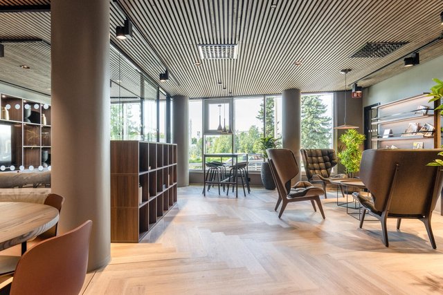 - Asukkaidemme käytössä on noin 600 m² laajat, monipuoliset yhteistilat, joihin kuuluvat muun muassa: kuntosali, viihtyisä vierashuone, juhla- ja kokoustila, IT-työpisteitä etätyöskentelyyn ja saunaosasto sekä aulapalvelupiste.