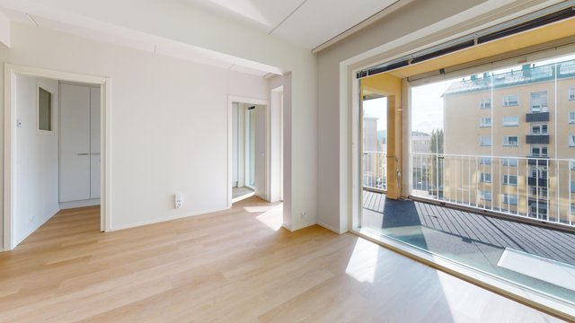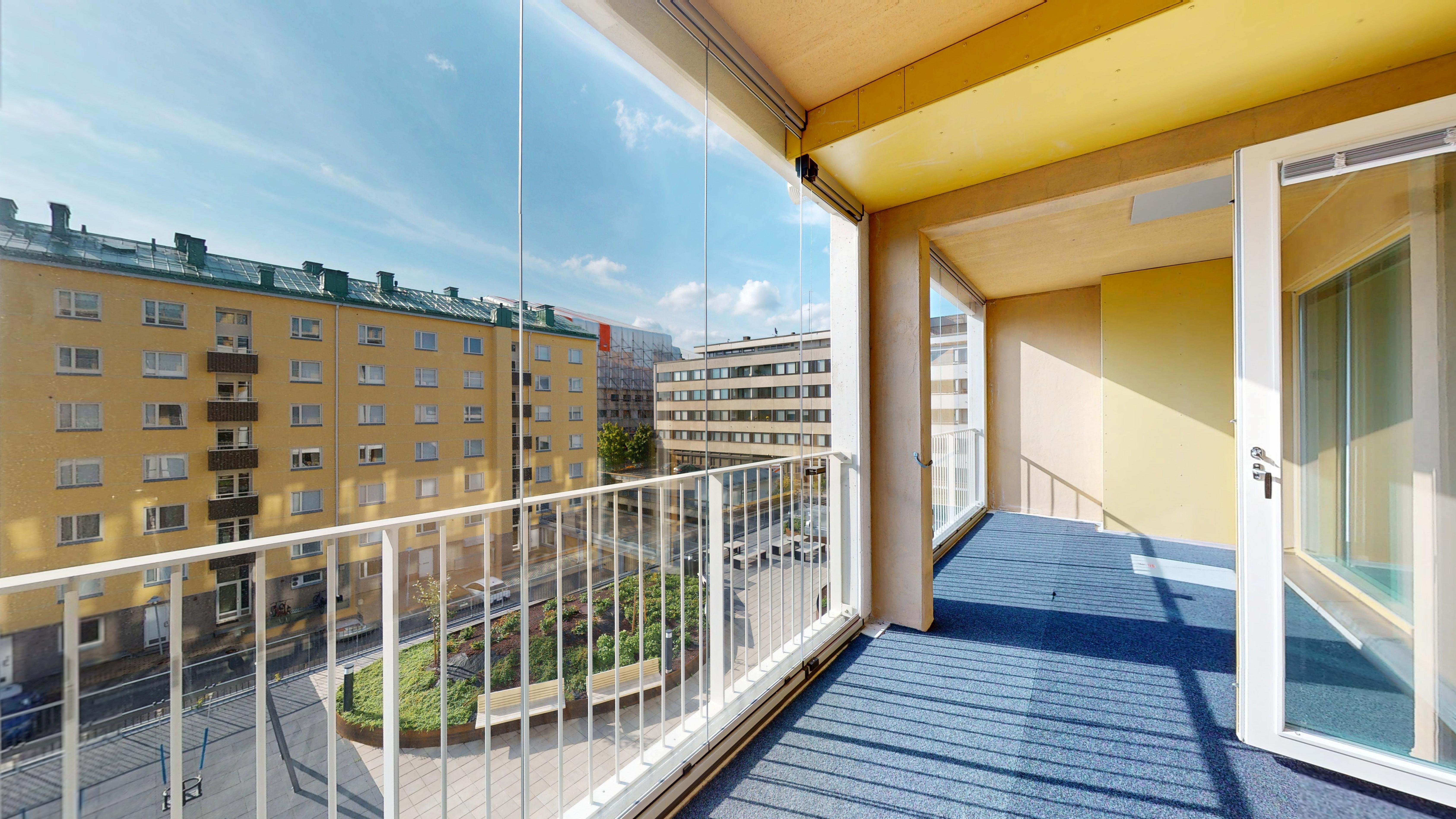 Uusi kaksio Jyväskylän keskustassa isolla lasitetulla parvekkeella.