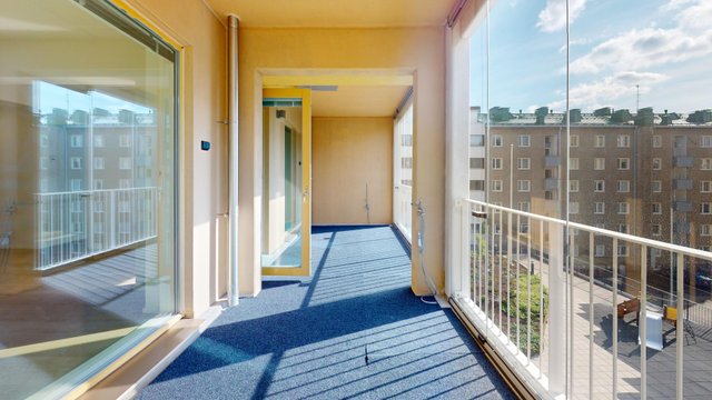 Iso lasitettu parveke on tämän asunnon toinen olohuone.